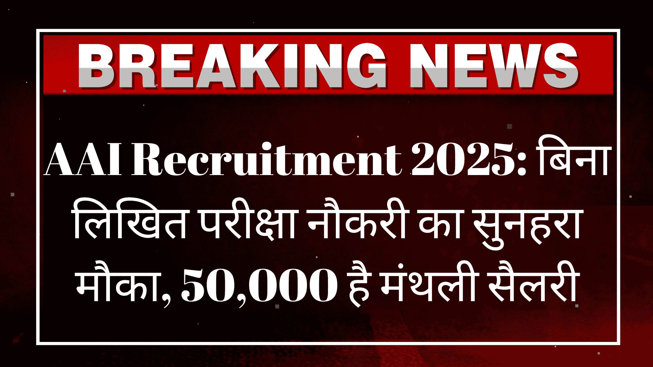 AAI Recruitment 2025, नई दिल्ली: एयरपोर्ट्स अथॉरिटी ऑफ इंडिया (AAI) ने AAI Recruitment 2025 के तहत विभिन्न पदों पर भर्ती के लिए नोटिफिकेशन जारी किया है। इस भर्ती की सबसे खास बात यह है कि उम्मीदवारों का चयन बिना लिखित परीक्षा के किया जाएगा। केवल निर्धारित शैक्षिक योग्यता और साक्षात्कार के आधार पर नौकरी का मौका मिलेगा। यह उन लोगों के लिए सुनहरा अवसर है, जो सरकारी नौकरी की तलाश में हैं।