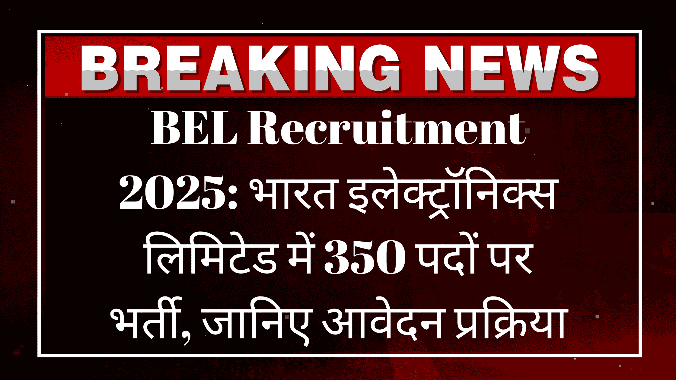 BEL Recruitment 2025: भारत इलेक्ट्रॉनिक्स लिमिटेड (BEL) ने 2025 में 350 पदों पर भर्ती के लिए आधिकारिक अधिसूचना जारी कर दी है। यह भर्ती विभिन्न तकनीकी और गैर-तकनीकी पदों के लिए आयोजित की जा रही है। इच्छुक और योग्य उम्मीदवार इस सुनहरे अवसर का लाभ उठा सकते हैं।