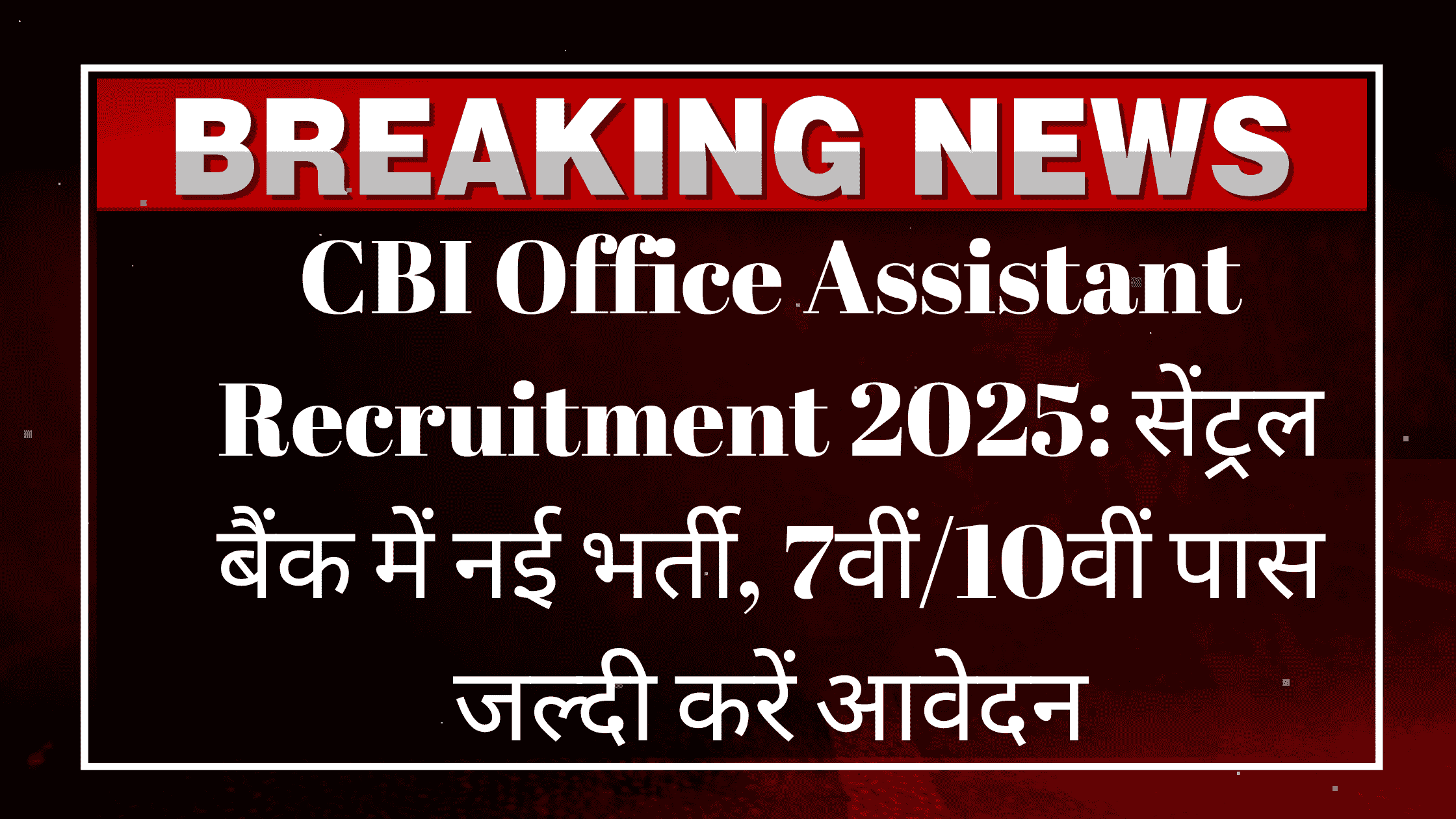 CBI Office Assistant Recruitment 2025: सेंट्रल बैंक ऑफ इंडिया (CBI) ने 2025 में ऑफिस असिस्टेंट पदों के लिए भर्ती का नोटिफिकेशन जारी कर दिया है। यह भर्ती खास तौर पर 7वीं और 10वीं पास उम्मीदवारों के लिए शानदार अवसर लेकर आई है। यदि आप सरकारी बैंक में नौकरी करने का सपना देख रहे हैं, तो यह आपके लिए बेहतरीन मौका हो सकता है। इस लेख में भर्ती प्रक्रिया, पात्रता, चयन प्रक्रिया और आवेदन प्रक्रिया से जुड़ी सभी जरूरी जानकारी दी गई है।