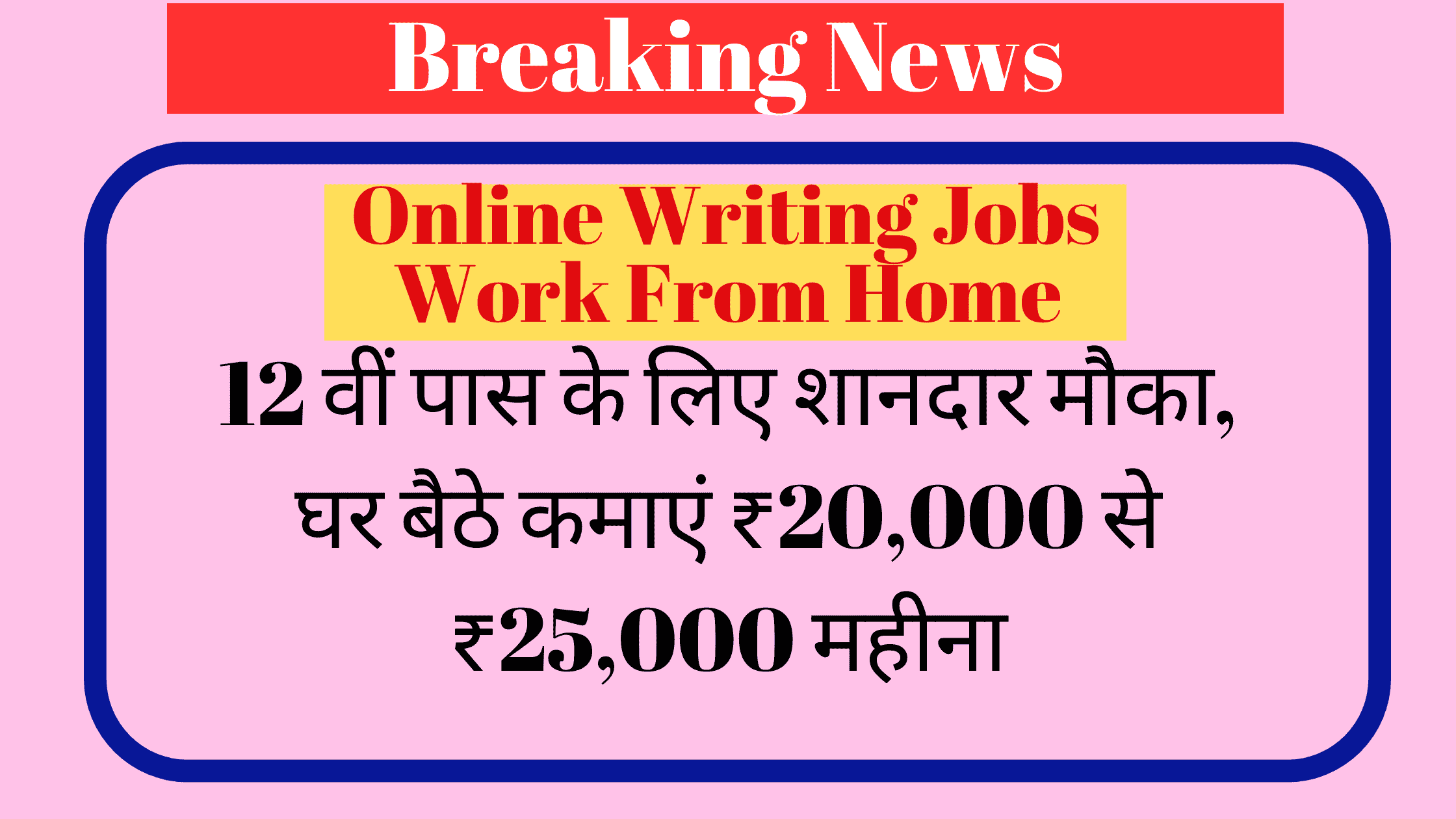 Online Writing Jobs Work From Home: क्या आप 12वीं पास हैं और घर से पढाई करने के साथ अच्छा पैसा कमाना चाहते हैं? तो आपके लिए एक बेहतरीन अवसर है! ऑनलाइन लेखन जॉब्स यानी writing job के जरिए आप आसानी से हर महीने ₹20,000 से ₹25,000 तक कमा सकते हैं। इसमें न सिर्फ फ्लेक्सिबल टाइमिंग मिलती है, बल्कि यह जॉब उन लोगों के लिए आदर्श है, जो अपनी लेखन क्षमता को पैसे में बदलना चाहते हैं। इस जॉब को बिना किसी अनुभव के शुरुआत किया जा सकता है।