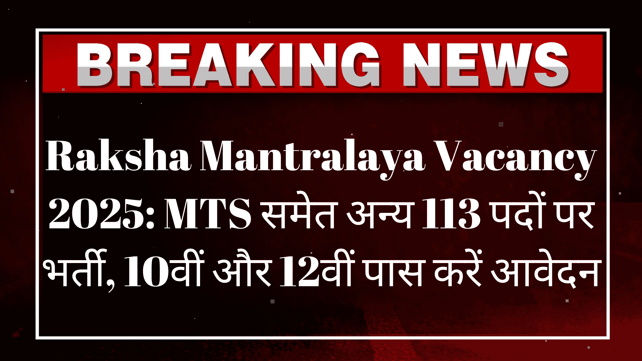 Raksha Mantralaya Vacancy 2025: MTS समेत अन्य 113 पदों पर भर्ती, 10वीं और 12वीं पास करें आवेदन