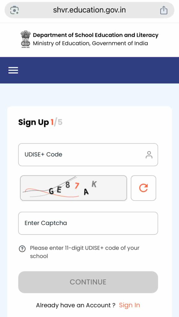सबसे पहले 👉 https://shvr.education.gov.in/account/sign-up/1 पर जाएं।